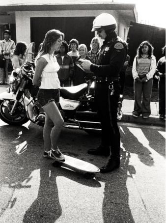 Skateboarding on the sidewalks and on certain roads or by businesses was not permitted and the were a lot of police in that area. But how were we to know the laws we were just kids.? I received my first skateboarding ticket in 1975, pretty close to my birthday in late October. I was skateboarding on a sidewalk near some homes. Now I knew this rule. Since this was in Los Angeles I had to go to Juvenile Traffic Court there. Too afraid to tell my parents I asked my grandmother to come with me. I was crying of course and the judge said I had to pay a $15 fine and to pick up trash for one weekend. I remember him telling me that he better not see me in his courtroom again. He scared me then, but I laugh now.